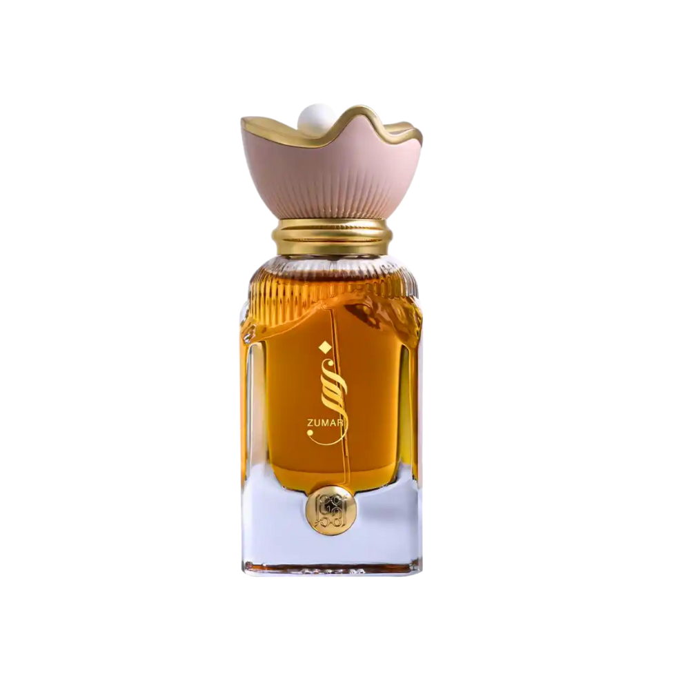 This captivating fragrance opens with tantalizing top notes of saffron, lending a rich, aromatic depth; pear and red berries add a refreshing sweetness that awakens the senses; and Kinam oud accord creates a delightful interplay of fruity and aromatic elements. As the fragrance evolves, it reveals a stunning floral heart composed of gardenia, jasmine, Bulgarian rose, Rose Grasse, and frangipani, enveloping the wearer in a romantic and enchanting aura. Finally, Zumar culminates in a sumptuous base featuring brown sugar and cacao, harmonizing beautifully with the earthy richness of patchouli and oud, alongside the warmth of white musk and the depth of rose resins, resulting in a velvety finish that lingers on the skin, creating a magnetic allure that leaves a lasting impression.