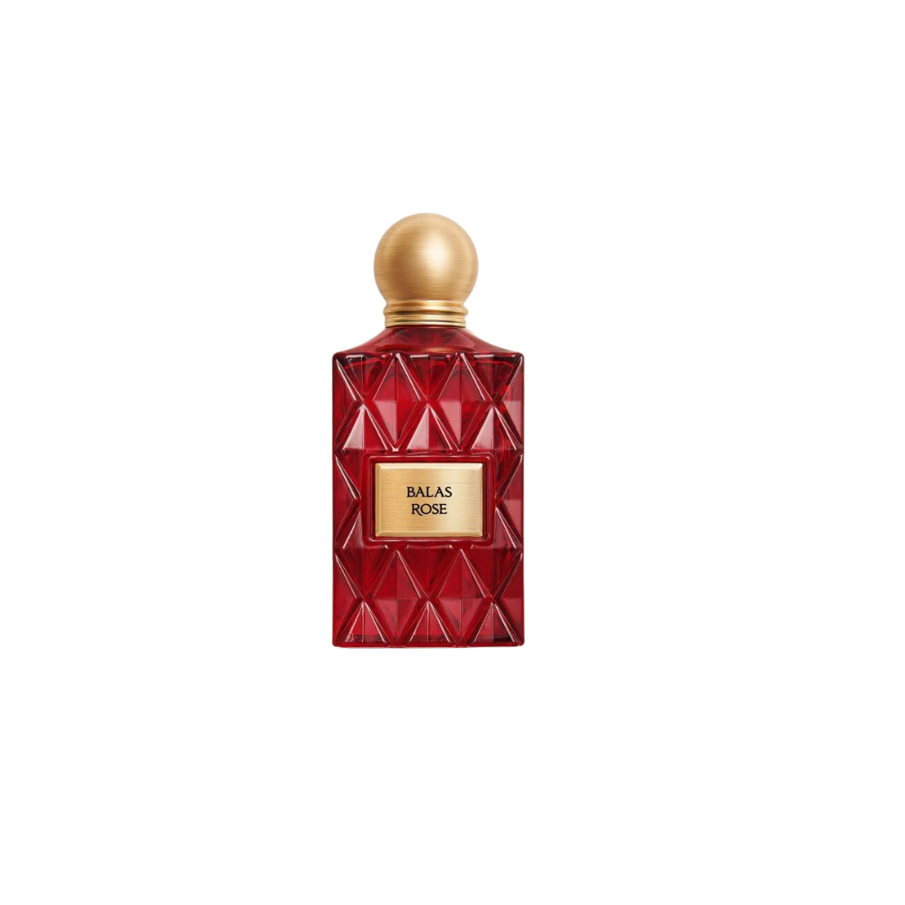 Balas Rose is a fragrance that evokes the opulence of a royal hall with its luxurious blend of notes. The scent opens with the rich aroma of roses and saffron, complemented by the freshness of red fruits. As the fragrance develops, the heart reveals a blend of suede, jasmine, and vanilla, creating a warm and inviting atmosphere. The base is characterized by strong notes of cedar wood, musk, and birch wood, providing a sense of strength and authority.