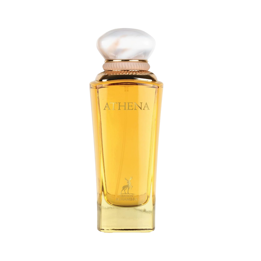 Athena by Maison Alhambra is a Floral fragrance for women. This is a new fragrance. Athena was launched in 2025. Top notes are Tangerine, Pink Pepper and Bergamot; middle notes are Jasmine Sambac, Ylang-Ylang and Lily of the Valley; base notes are Vanilla, Sandalwood and Patchouli.