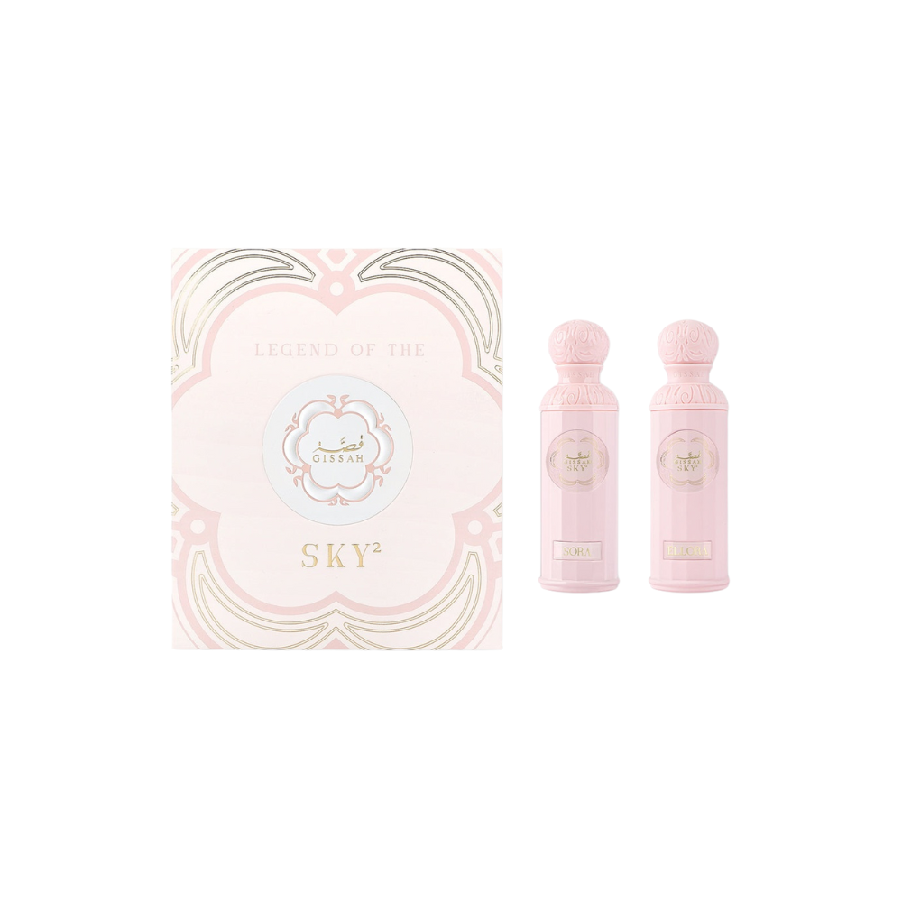 Immesre your senses in the allure of femininity with Legend of the Sky for Her: Ellora, a captivating blend of citrus, amber, and leather, and Sora, a delightful fusion of fruity, floral, and woody notes. Embrace your elegance and grace with every spritz.
